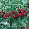 The most popular cherry for making cherry pies. Blooms in early May and ripens in early July with an abundant bounty of fruit. Full sun, adapts to a variety of soil types. The tree is self-fertile and produces large sized, dark red cherries with a good tangy flavor.